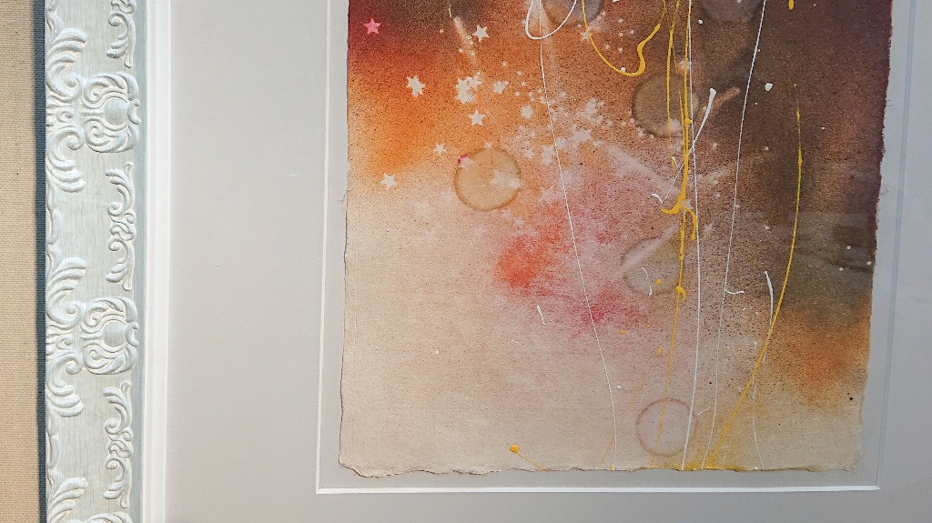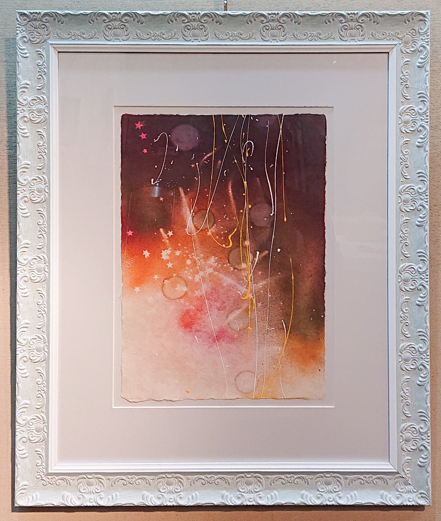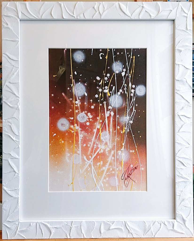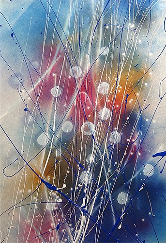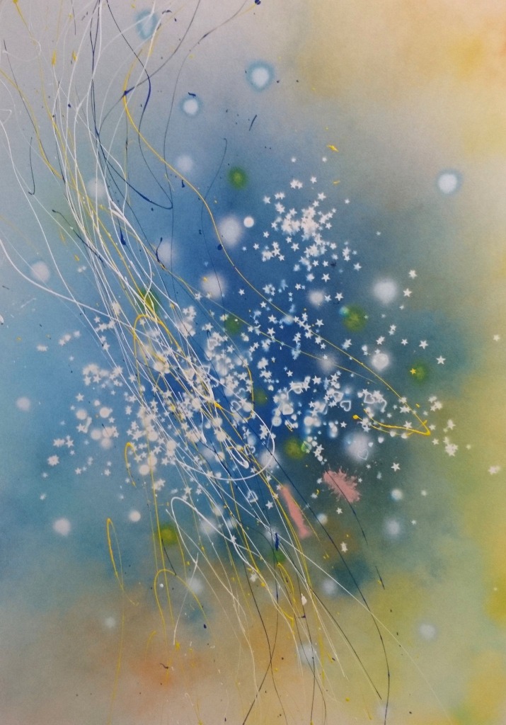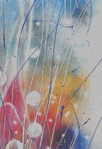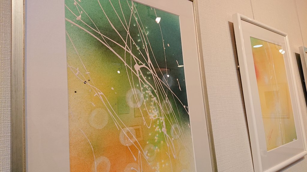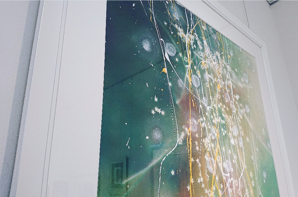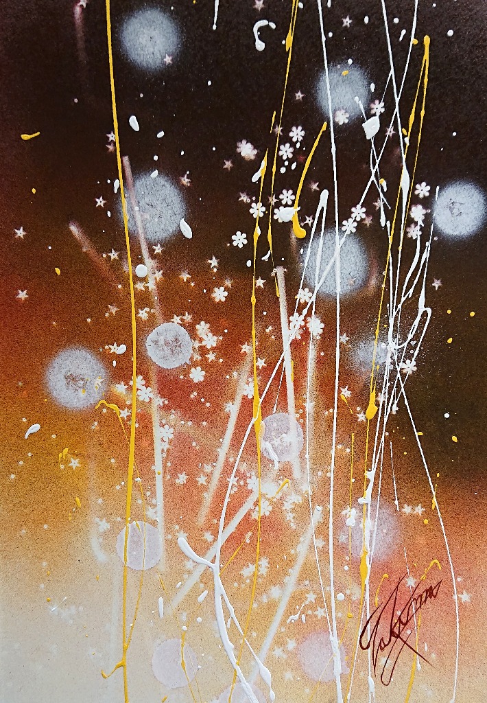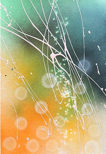 アクリルの可能性を追求しているときに、急遽思い立ったシリーズ。最初は、ラッカースプレーで全部同じ色に塗り、シンプルに黒や白の線を垂らすだけでした。そこから、アクリル系の吹き付けに変更し、微妙な色の変化を付けるようになったり、型抜きを使ったり…用具や表現の変化と共に、「アクリルでやる意味」を強めて行ったように思います。このシリーズは、最も抽象的で、見た方それぞれの意味を自由に持たせやすい絵だと思っています。絵と向き合い、感じるままに、思考を委ねる楽しみがあるのではないでしょうか。